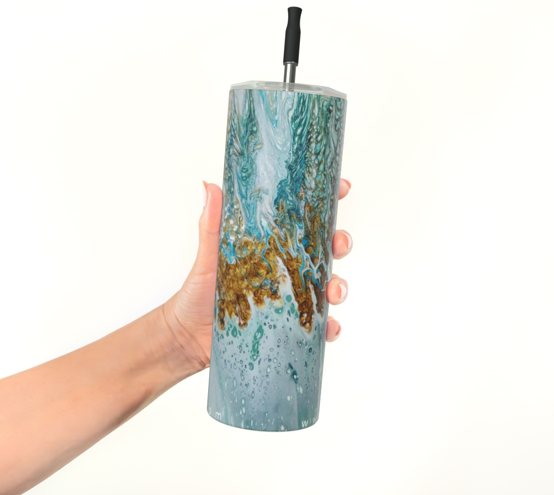 Meet your new favorite water bottle! The all-over print stainless steel tumbler combines practical design with personal flair. Printed on-demand and constructed from durable double-walled stainless steel with slide top opening and built-in straw, it’s perfect for toting any beverage you need throughout the day.
